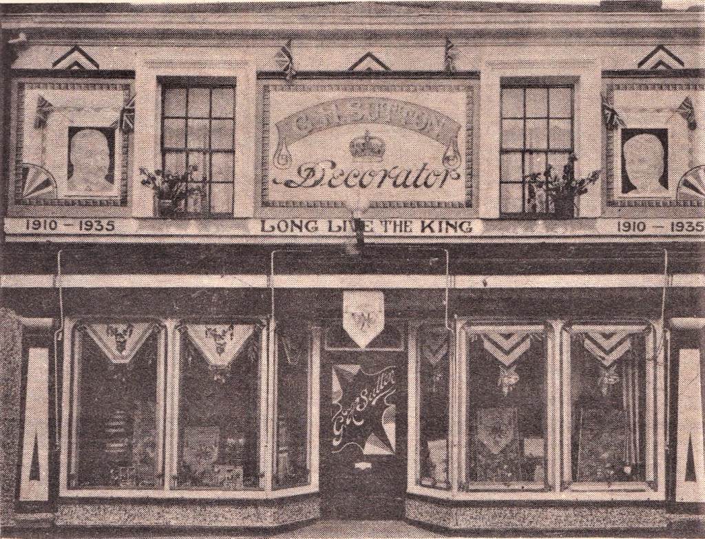 A week before the great day the town began to dress itself in festive garb … houses and business premises all over the town started to display the national colours until by Saturday evening Alford presented a scene of bright colour , seldom if ever seen before. the centre of the town in and around the Market Place was literally alive with colour. Mr GH Sutton had spent several days in decorating his business premises. The whole shop front was painted in a tasteful colour scheme of red, white and blue with a panel on each side. In the left hand panel was painted a portrait of His majesty the King and in the right hand panel was a similar representation of his gracious consort the Queen: and in gilt letters surmounting the whole was painted “Long Live the King”. … All of the business people had done their part and as one walked about the town one saw demonstrations of loyalty everywhere. And it seemed that nature was co-operating with artificial devices , for seldom had the gardens in the town looked better. Louth Standard Saturday 11th May 1935